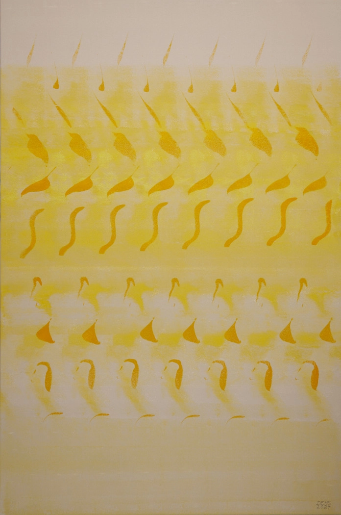 In dieser Werkreihe wird das Unsichtbare sichtbar. Stimmungen und innere Gespräche verdichten sich zu abstrakten Strukturen, in denen Farbe, Form und Rhythmus die Innenwelt des Denkens visualisieren.